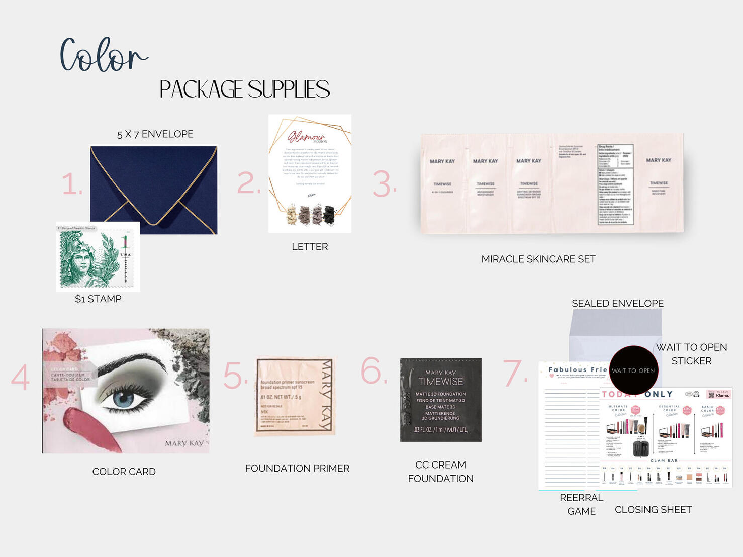 (Tools below for matching the her perfect shade)- Color Card - Which includes 3 eye shadows, 1 blush,1 lipstick.